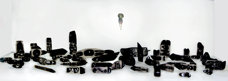 , 2008, installation, 52 objects, acrylic, collage and pen on cardboard