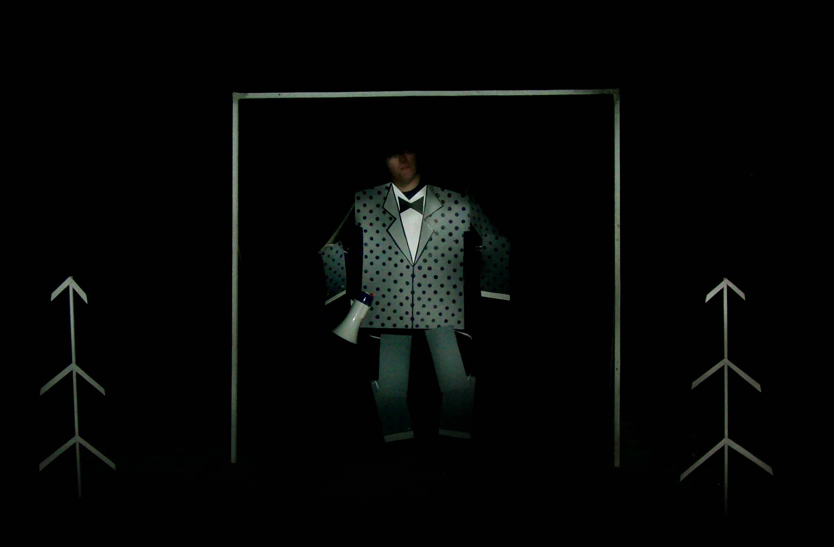 The central theme of The Recession of New Year's Eve is material and spiritual impoverishment. The selebration of New Year@s Eve in consumer societies is a festival of bad taste, as well as a race for food and gifts which are often there to fill emptiness with meaning.It also represents a consumerist explosion as a reaction to the oppresions of the capitalist life- style. The performance examines the influence of the recession on the habits of New Year's Eve celebrations.