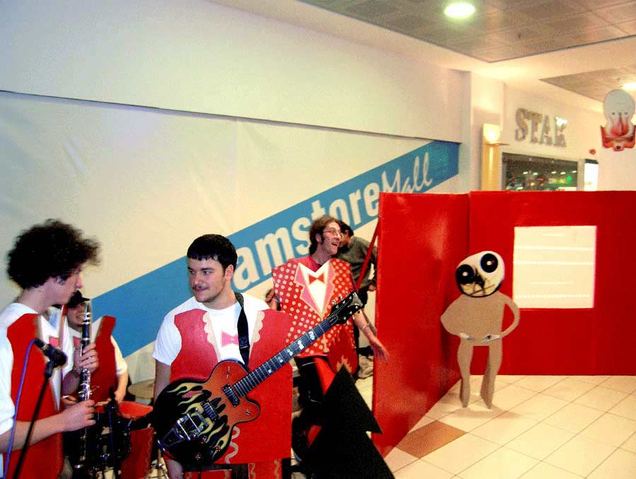 The performance took place on December 30 th , 2005 in Ramstor Shopping Mall, in down town Skopje . The jazz band “Letecki pekinezeri” also took part in this collabotive performance
