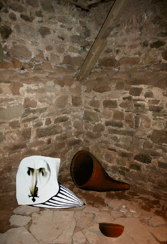 , 2005, insallation, 3 objects, acryl on cardboard, City watch, Shtip, Macedonia