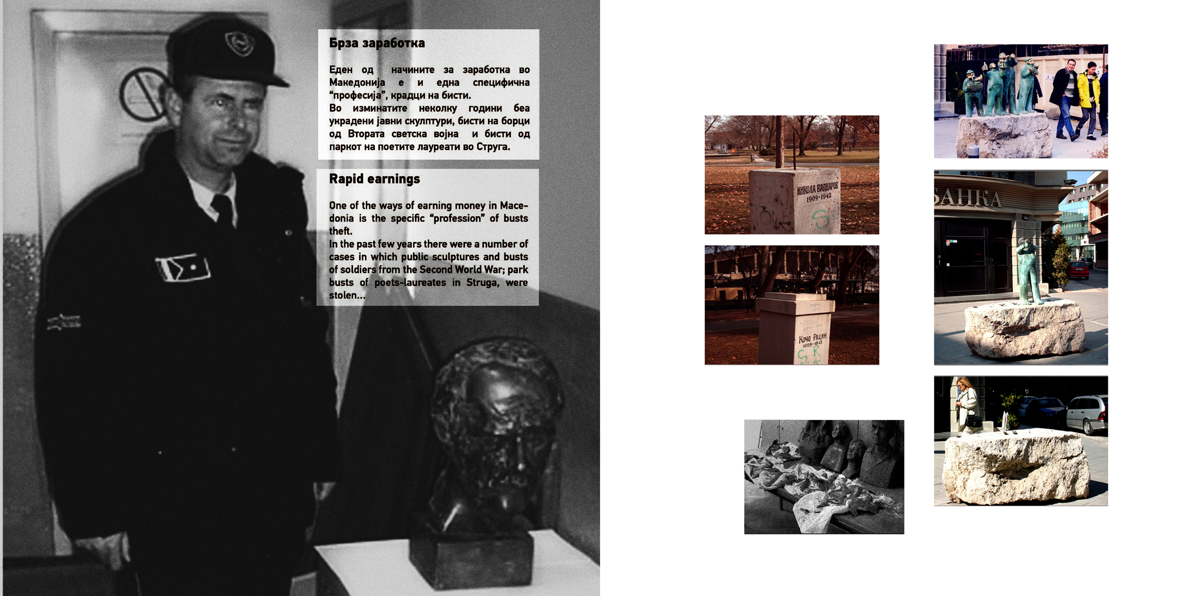 The artwork Make the best of the worst situation is focused on the different situations that occur in the period of transition and the diminution of the working class – people form Macedonia have been forced to find a new job, to become self-employed or to earn money in other, inventive legal or illegal way.